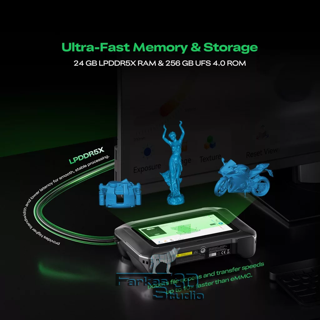 • Hordozható kivitel: Ideális helyszíni szkenneléshez és külső munkákhoz.