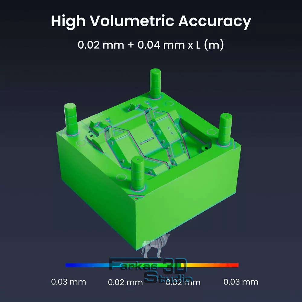 • Volumetrikus pontosság: 0,02 mm + 0,04 mm × L(m)