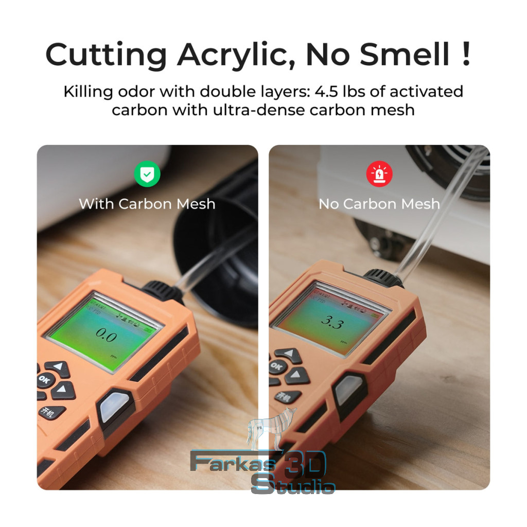 Különösen hasznos fa, MDF, akril és más intenzív füstképző anyagok feldolgozásakor.